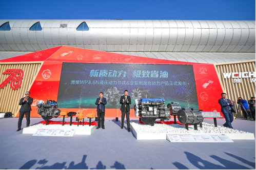 会上,潍柴隆重发布了WP3.6N液压动力总成与全系列混合动力产品。