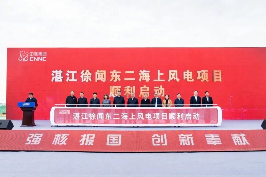 2024年12月18日,中核集团湛江徐闻东二海上风电项目和明阳巴斯夫湛江徐闻东三海上风电示范项目在湛江市徐闻县锦和镇以东海域顺利举行了开工动员会。这两个项目的启动,标志着湛江在绿色低碳发展的道路上迈出了坚实的一步,海上风电已成为驱动湛江绿色发展的“蓝色引擎”。