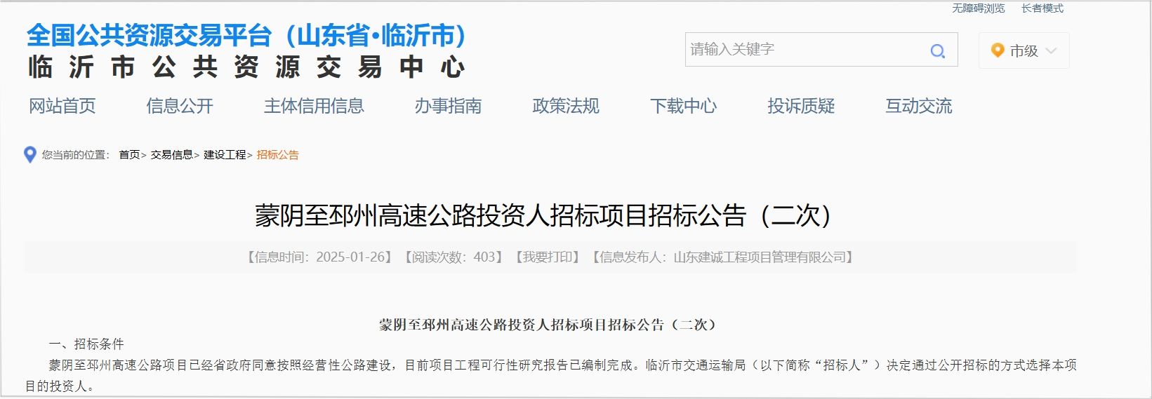 在区域协同发展的道路上,交通基础设施的建设始终扮演着至关重要的先行角色。近日,备受瞩目的蒙阴至邳州高速公路项目正式启动招标,该项目预计总投资将达到104.78亿元,并规划在3年内完成建设。