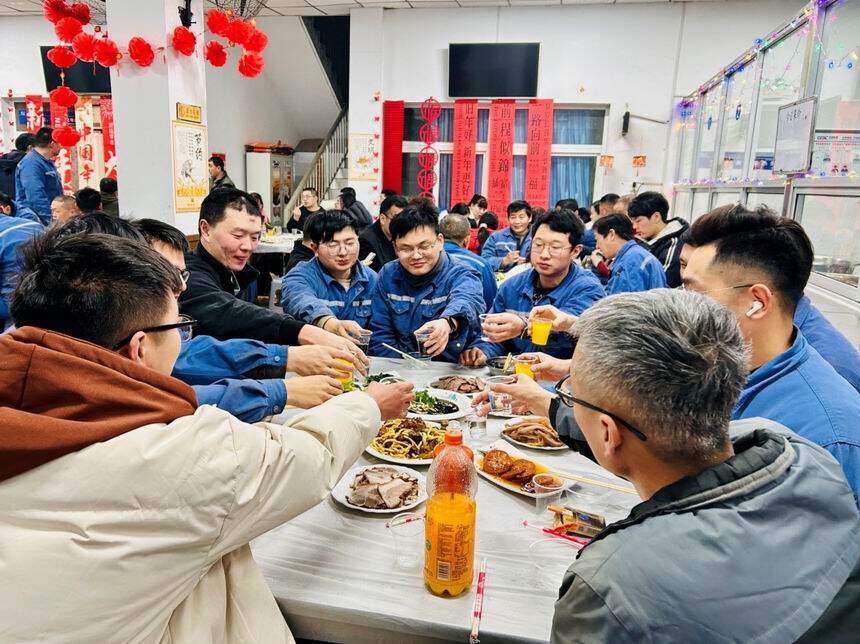 春节期间,各项目工地上张灯结彩,装扮一新,浓浓的年味扑面而来。在阜阳检修项目部,一场“反向春运”让坚守的职工们感受到了家的温暖。家人们久别后的相聚,构成节日里一幕幕暖心画面。除夕之夜,丰盛的年夜饭摆满了餐桌,大家同斟共饮,共品佳肴,跨年之夜温暖如春。