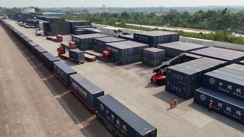 2025年2月,中老铁路万象南站换装场呈现出一派繁忙而有序的景象。满载泰国榴莲、龙眼等特色货物的集装箱被稳稳吊装上开往中国的“澜湄快线”列车,与此同时,装有中国啤酒、药膏等货物的集装箱也启程前往泰国。这一景象生动展示了中老铁路在中泰贸易中的重要地位。