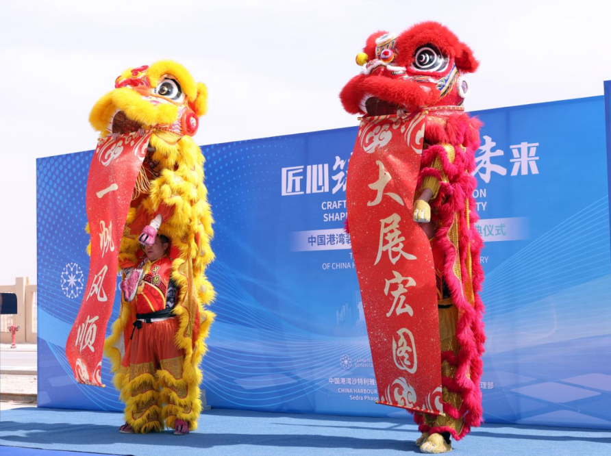 值此中国春节之际,庆典活动安排中国传统舞狮表演作为开场,为仪式营造出热烈而祥和的气氛。中国港湾和ROSHN双方代表上台为舞狮点睛,寓意着祥瑞、祝福和好运,也代表着工厂投产蓄势待发。