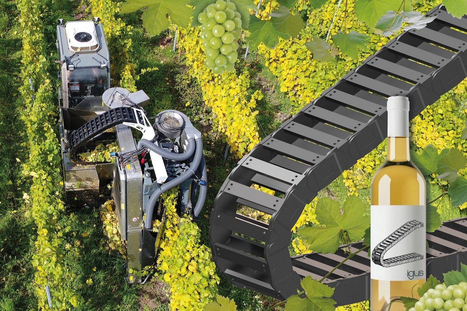 无论是与朋友一起逛圣诞市场,还是与家人一起享用圣诞大餐,一杯上好的热红酒或特制葡萄酒都是必不可少的。为了在劳动力短缺的时代依然能为人们提供这一理所当然的服务,葡萄酒生产商在葡萄收获期间必须越来越多地依赖自动化技术。然而,坡度达75%的斜坡和紧密排列的葡萄藤一直被认为不可能实现自动化。现在,德国CH engineering公司专门为这一应用领域开发出了一款非常紧凑的收割车。它采用了由高性能工程塑料制成的igus坚固拖链,即使在恶劣条件下也能可靠工作,最大限度地减少了葡萄酒生产商的维护工作。