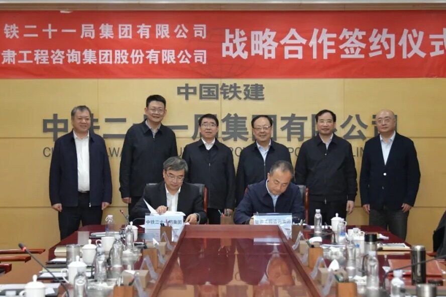 期间,中铁二十一局与甘肃工程咨询集团共同签署了战略合作协议。双方观看了企业宣传片,参观了中铁二十一局展览馆。