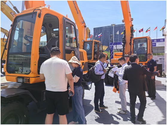 此次詹阳重工携8吨级15吨级和21吨级轮胎式液压挖掘机、轮胎式电吸盘抓钢机、轮式高速多用途工程车、全地形履带式人员运输车共6台装备隆重参加本届博览会。展会现场,各展区亮点纷呈。工程机械展区展出的装备展示着目前主流的产品、前沿的技术和卓越的创新成果,为与会者们提供了宝贵的交流机会、前沿的行业信息和可靠的经贸合作。公司展位吸引了众多业内人士驻足观看交流。