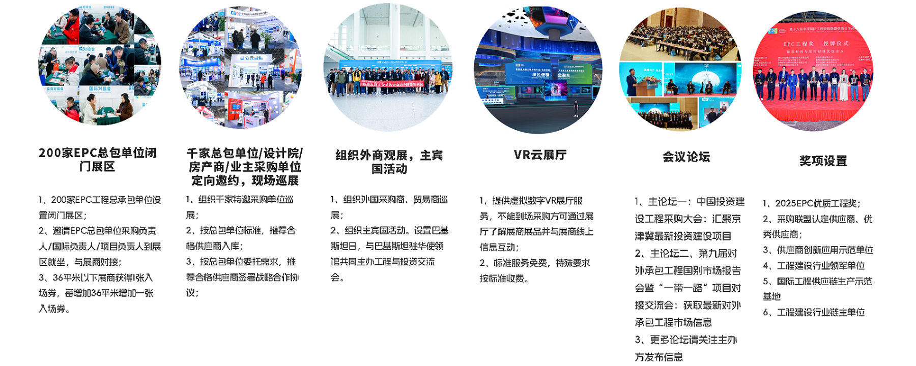 组委会特邀200家国际EPC总包单位,组成国际EPC总包单位公开展示专区及闭门展洽专区。