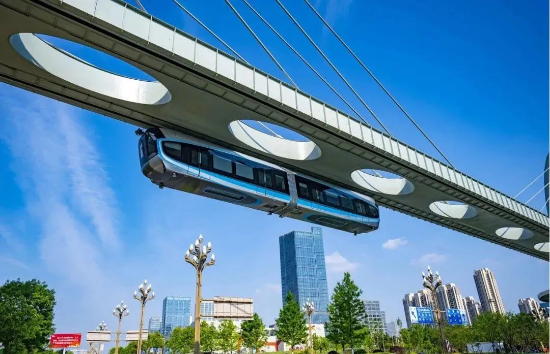 武汉光谷生态大走廊,一列通体湛蓝的列车“光子号”悬在轨道下方平稳滑过,宛如科幻电影中的未来载具。每当列车减速驶入站台,一套看不见的“能量魔术”就悄然上演。