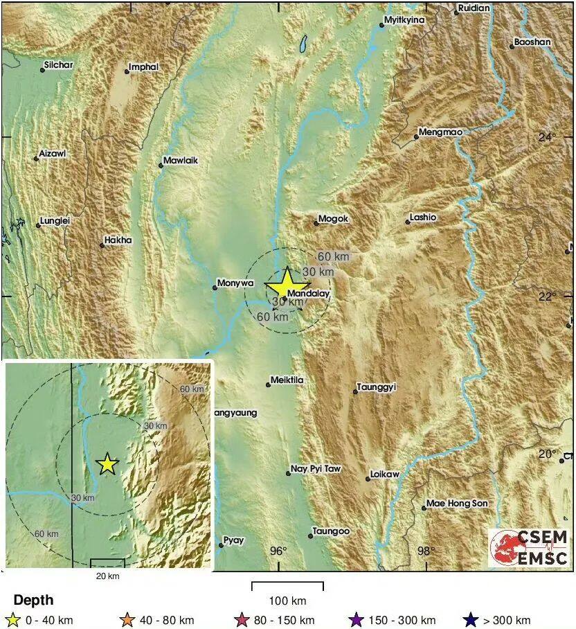 3月28日14时20分,缅甸(北纬21.60度,东经95.95度)发生7.9级强震,震源深度30公里,随后14时32分又发生6.4级余震。这是今年以来全球最大地震,缅甸仰光、我国云南多地和泰国全境震感强烈。
