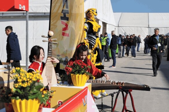 除了产品展示,雷沃重工还精心策划了一系列趣味互动活动。现场的古风乐器演奏、唐装模特展示、变形金刚互动、以及各种游戏互动,如掷飞镖、打卡拍照分享等,不仅增加了展会的趣味性,也让参观者更深入地了解了中国文化和雷沃品牌。