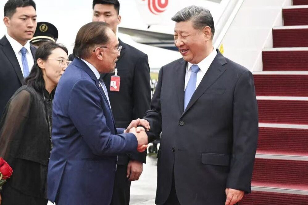 专机抵达吉隆坡国际机场时,马来西亚总理安瓦尔,外交部部长穆罕默德,陪同部长、交通部部长陆兆福等高级官员热情迎接。马来西亚儿童向习近平献花,马来西亚青少年表演富有当地特色的舞蹈,挥舞中马两国国旗,热烈欢迎习近平到访。