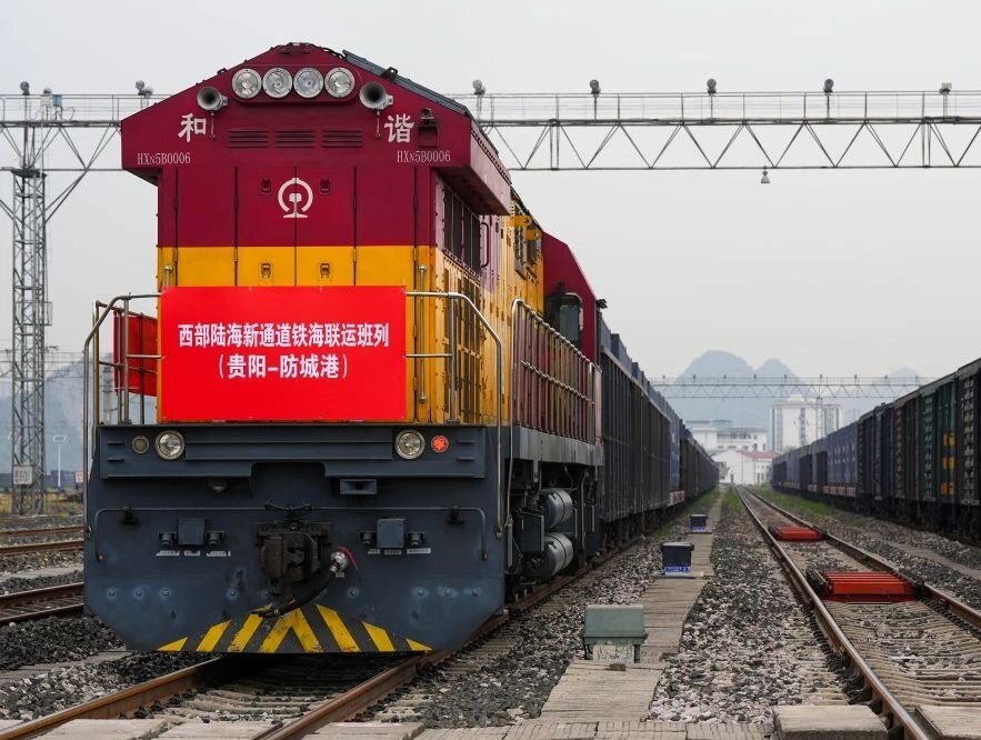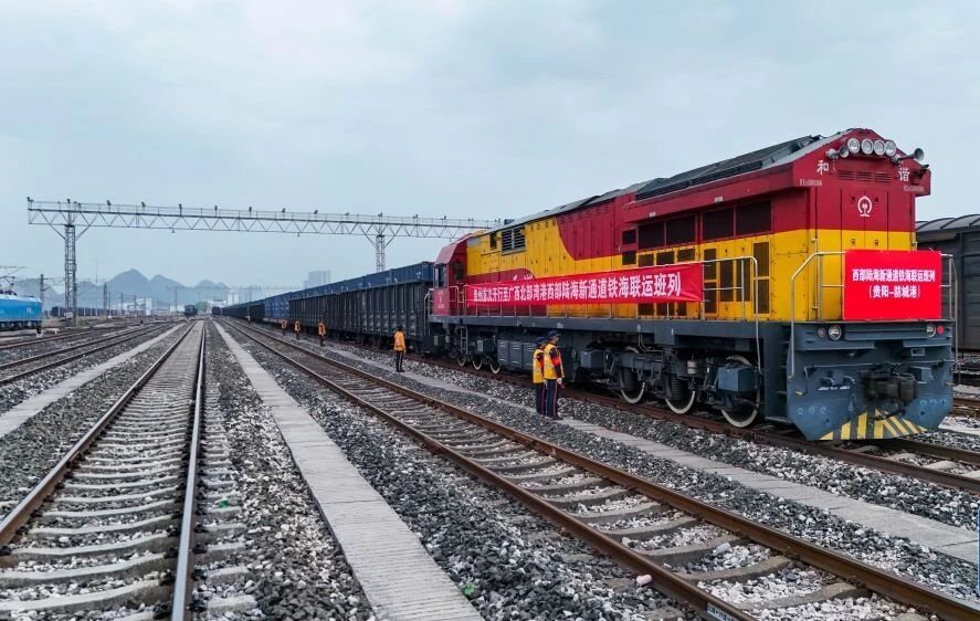 4月15日,一列满载2688吨化肥的铁海联运班列,从贵州贵阳南站编组场内鸣笛启程,驶向广西北部湾港(防城港)。这是贵州地区首次按集装箱整列班列组织开行至广西北部湾港的西部陆海新通道班列,标志着贵州国际物流运输体系进一步完善。