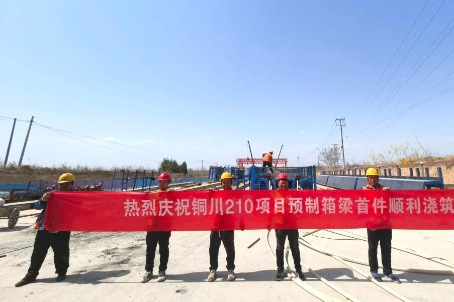 2025年4月7日,铜川210项目首片25米预制箱梁成功浇筑完毕,这标志着项目建设已正式转入上部结构施工的新阶段。