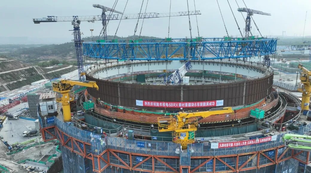 近日,陆丰核电6号核岛BRX反应堆厂房钢衬里模块8在一系列精准的标准化操作后,成功吊装就位。这一节点的顺利完成,标志着中国广核集团 “华龙一号” 堆型首个钢衬里筒体全模块化施工圆满收官,是核电建设领域的又一重要里程碑。