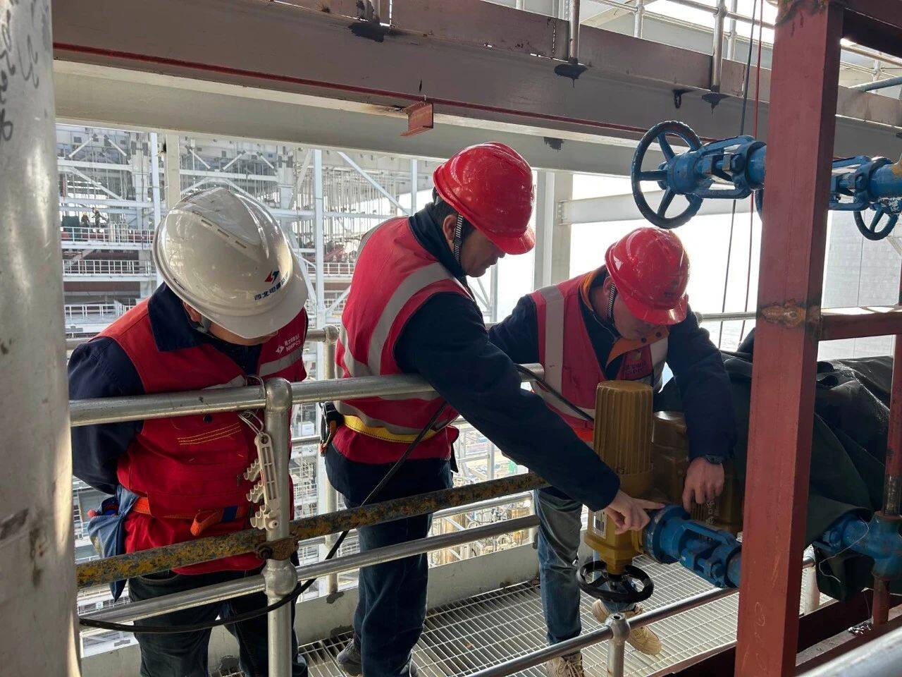 1号锅炉水压试验攻坚阶段,桥头发电公司充分发挥党员示范带头作用,组织多轮安全技术交底及试验条件检查,实行全过程质量监督,最终以“零泄漏、零缺陷”完成试验。面对5号输煤栈桥大截面钢结构吊装中高空作业及场地受限等挑战,党员骨干同心协力,合理规划吊装场地,吊装期间派专人协调盯守,全程跟班,确保施工作业安全有序展开。