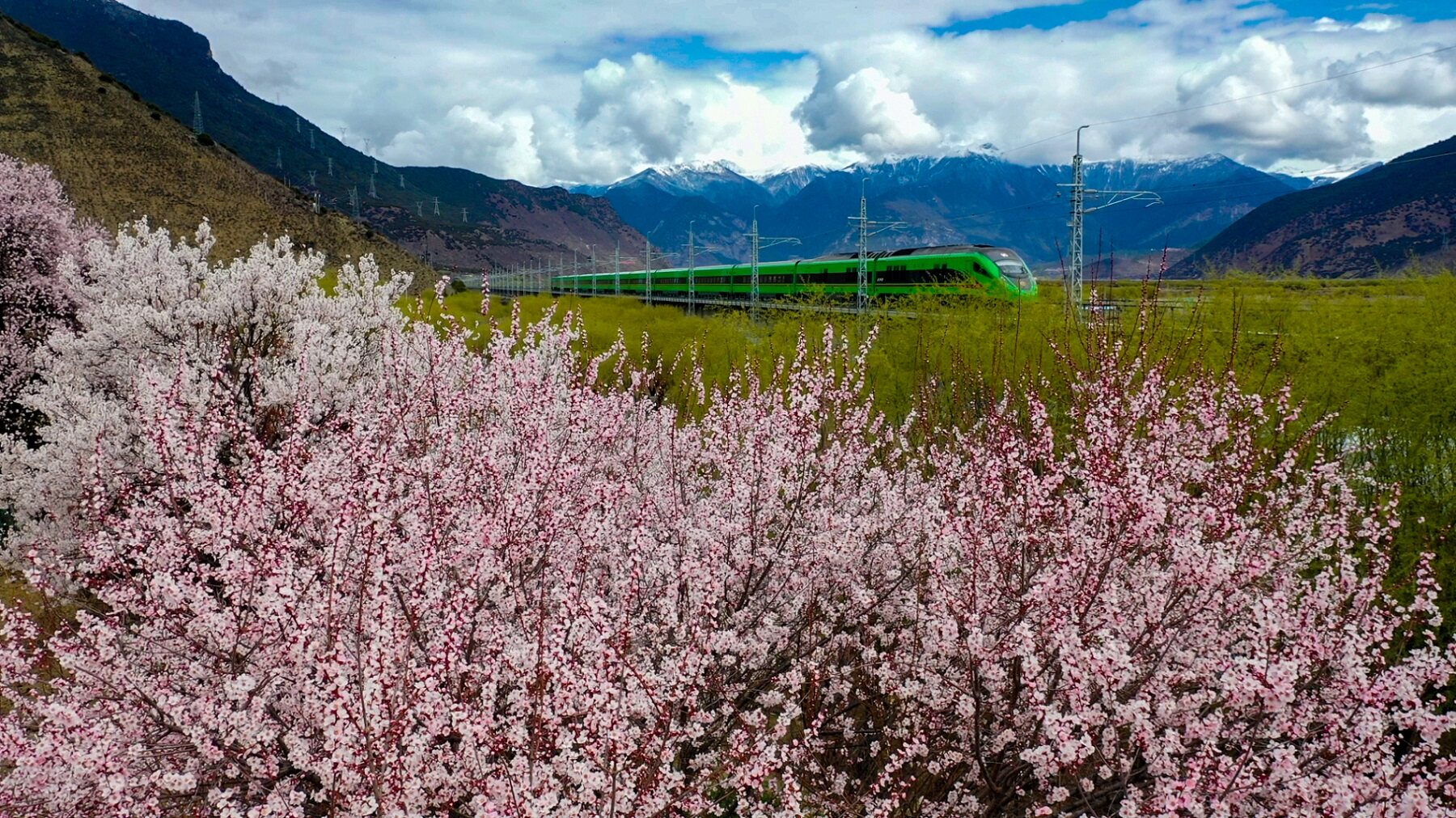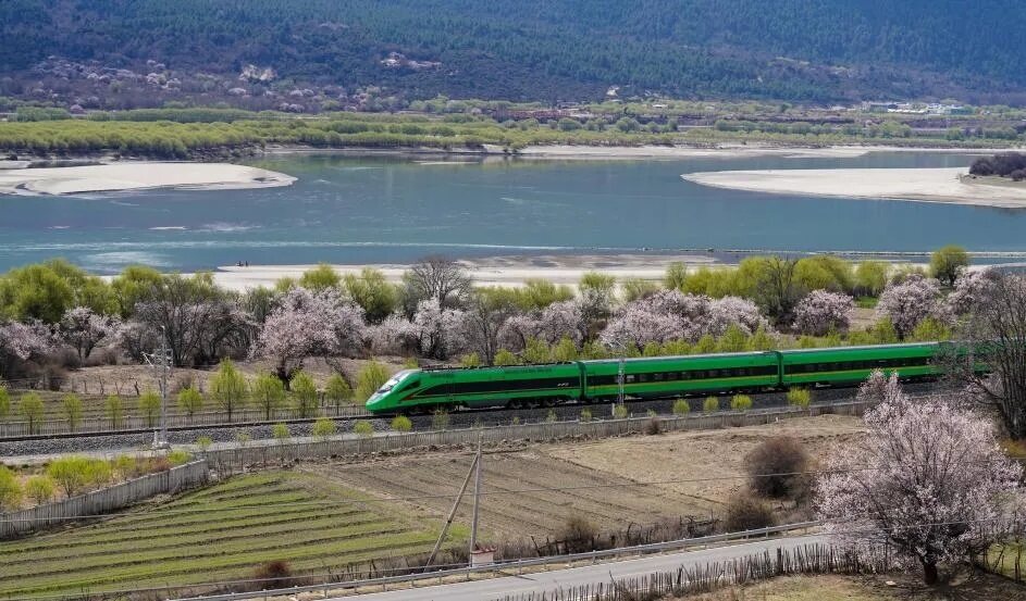 四月的雪域高原,高原“复兴号”宛如灵动的钢铁游龙,穿梭于尼洋河畔的桃花秘境。车窗外,巍峨雪山与灼灼桃林相映成趣,绘就一幅绝无仅有的春日盛景,让每一位乘客都沉醉其中。