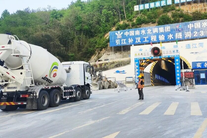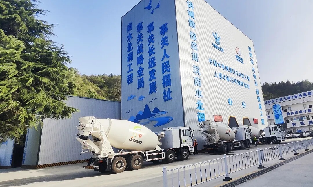 近日,在引江补汉工程施工现场,山推多套CD412-S35纯电动搅拌车有序地奔波在搅拌站和施工现场,成为建设的一道亮丽风景线,高效助力着这一重大水利工程建设。