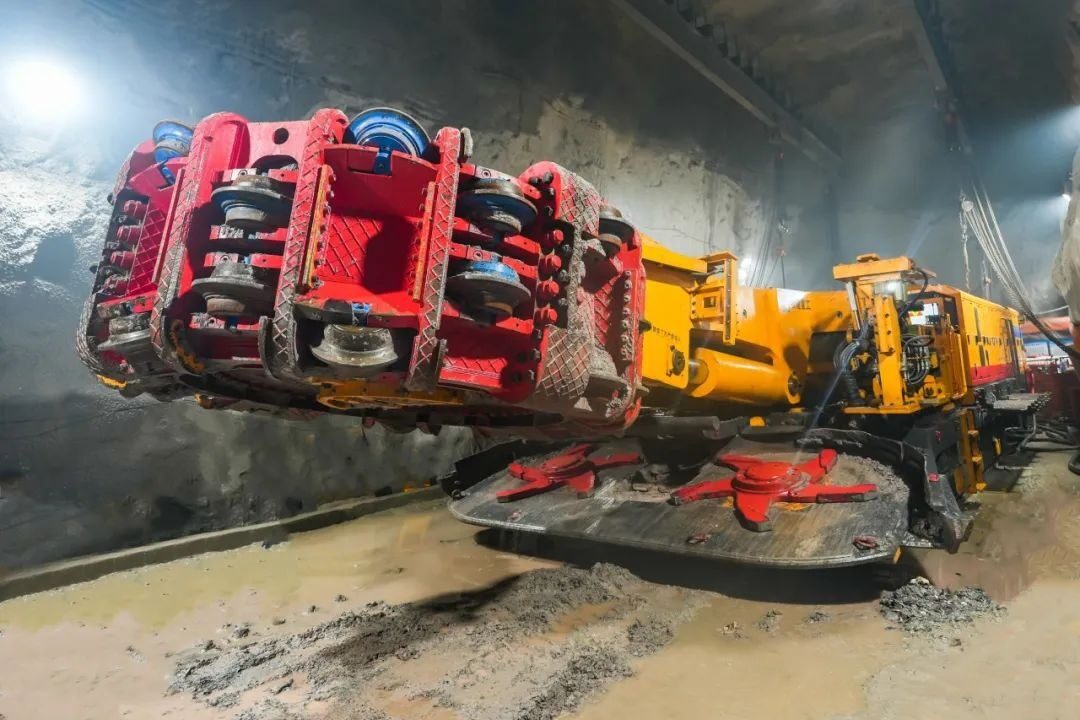 2025 年 4 月 25 日,全国首台滚刀式岩石掘进机在中色大冶铜山口矿举行投运仪式,标志着我国非全断面硬岩掘进装备领域实现重大突破。这一创新设备融合了掘锚机的灵活机动性与 TBM 全断面掘进机的强劲破岩性能,采用滚刀刀盘作业,可轻松应对抗压强度达 150MPa 的坚硬岩层。