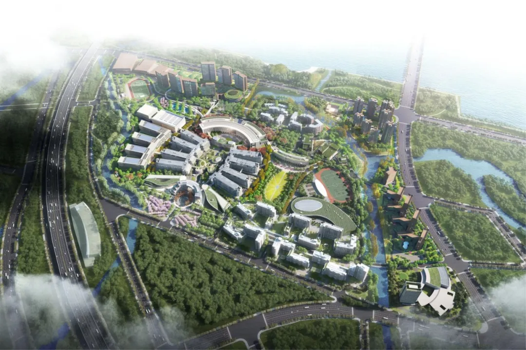 二期工程总建筑面积达 729,941 平方米,其设计独具匠心,秉持 “东方派、中国风、岭南韵、国际范” 的理念,在借鉴香港科技大学(清水湾)校园轴线式建筑布局特征的基础上,巧妙融入岭南地区传统 “梳式” 布局模式,致力于塑造既具岭南风格又融汇国际特色的校园形象。尤为值得一提的是,教学综合体、产学研大楼将严格按照三星绿色建筑标准建设,建成后有望成为大湾区教育科研领域的崭新标杆。