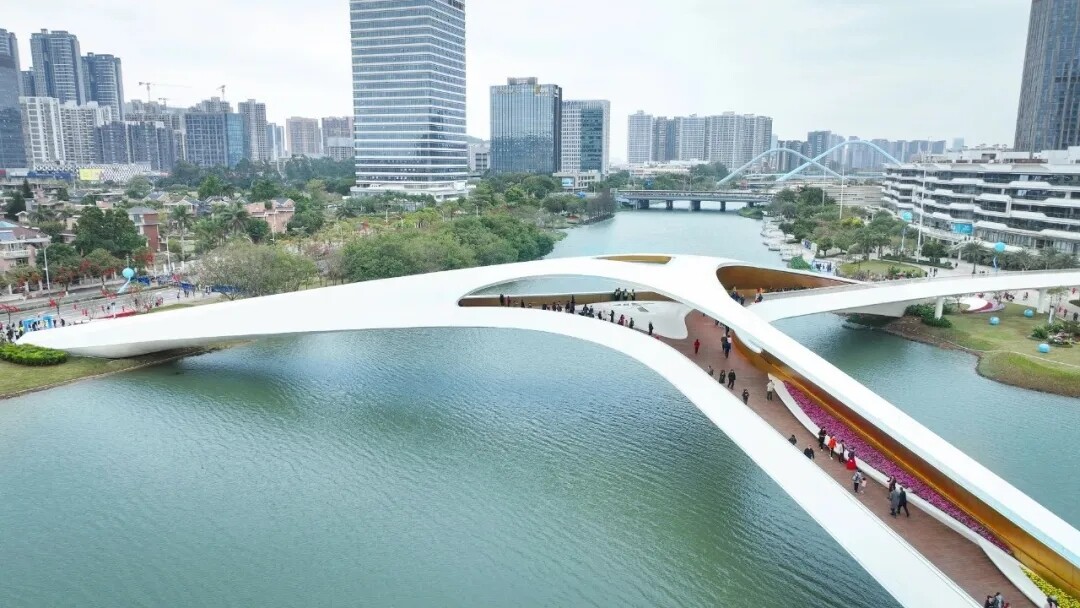 位于粤港澳大湾区几何中心南沙新区蕉门河中心腹地的广州南沙聚星桥,凭借独特魅力斩获亚瑟・海顿奖。作为景观人行桥,它以 “三地联心联手、汇聚新星” 为设计理念,三肢结构巧妙横跨蕉门河与乌洲涌交汇处,高效连通三岸。面对建筑空间、结构尺度等多重挑战,工程师们另辟蹊径,独创 155 米超大跨径、1/21 超坦矢跨比的三肢钢箱拱结构,研发软土地基建造超大跨径超坦拱桥的成套技术,并运用冗余度互等的动态增量控制设计方法,让文化底蕴、建筑美学与结构力学在这座桥上实现完美统一。