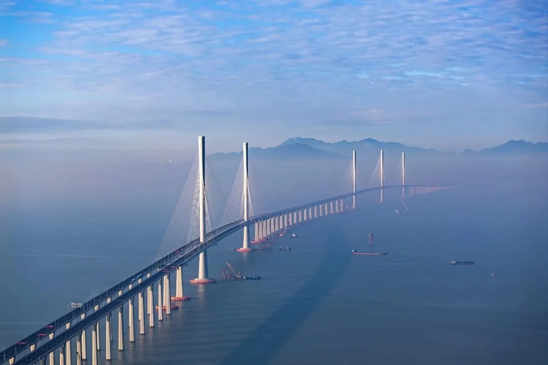 黄茅海跨海通道摘得乔治・理查德森奖。这座通道宛如一条海上巨龙,连接珠海金湾与江门台山,海域段长达约 14 公里。其控制性工程黄茅海大桥与高栏港大桥堪称工程奇迹 —— 黄茅海大桥主跨达 2×720 米的三塔斜拉桥,高栏港大桥则为 700 米主跨的双塔斜拉桥。“双曲面独柱塔 + 分体式钢箱梁” 的创新设计,将力学之稳与美学之韵完美融合,标志性的 “小蛮腰” 形索塔线条优雅,成为粤港澳大湾区的地标之一。从多塔斜拉桥结构体系优化,到风振控制技术突破,再到工业化智能建造与绿色施工,黄茅海跨海通道全方位实现技术革新,引领行业发展新方向。