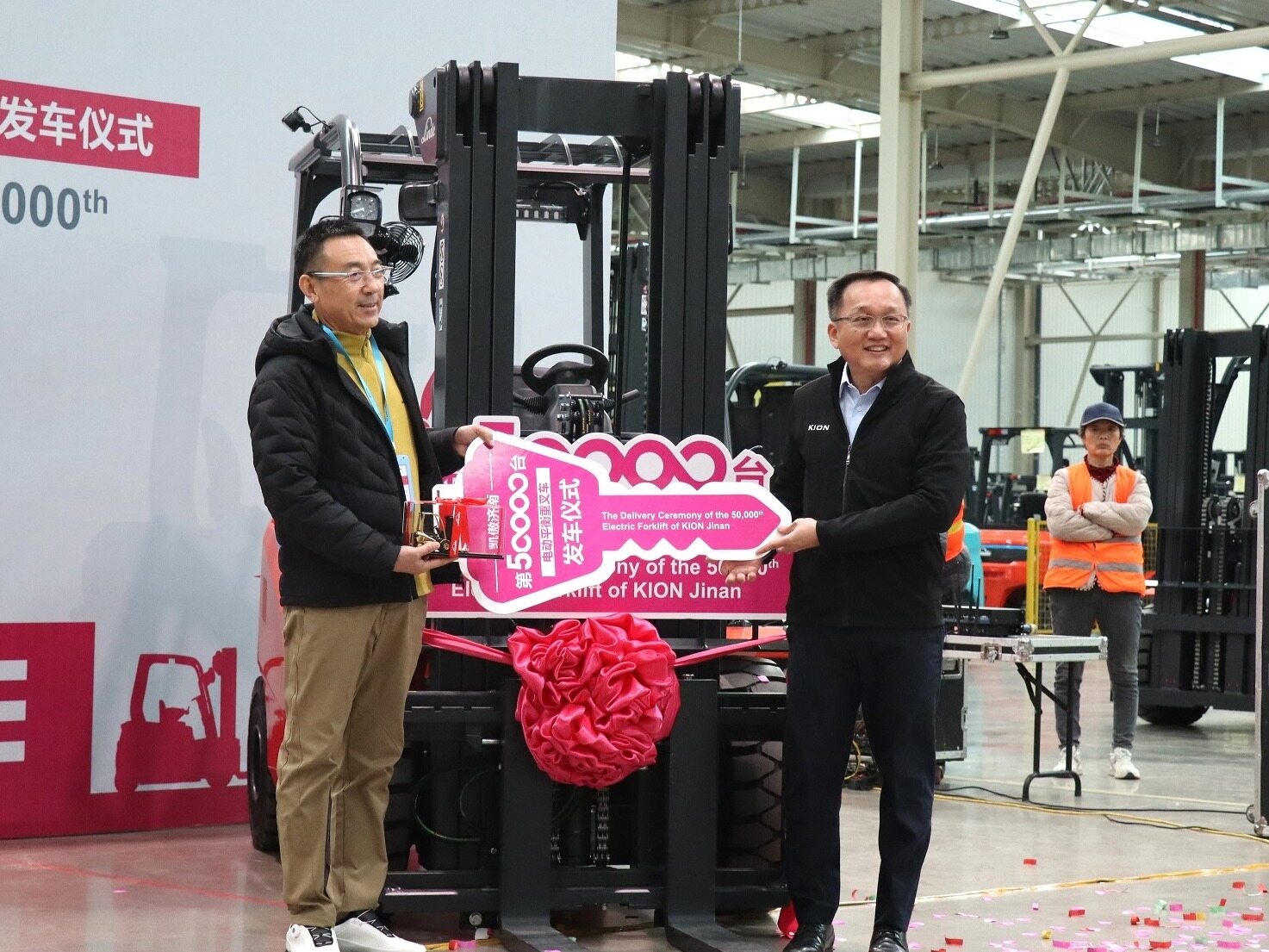 实力与信赖的双向奔赴 | 凯傲济南工厂第50000台电动平衡重叉车成功发车