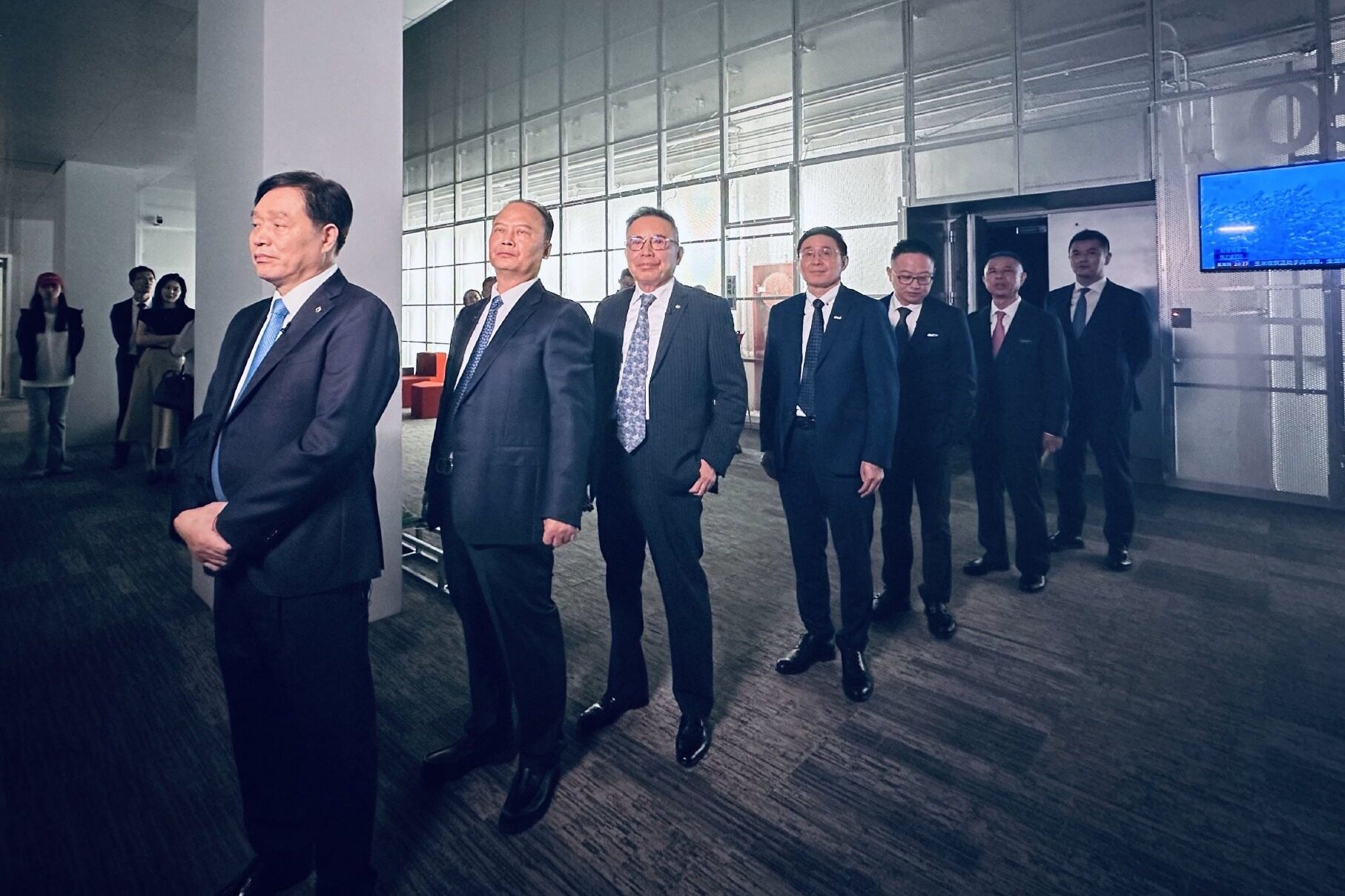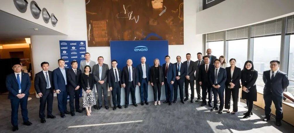 ENGIE可再生能源与灵活发电高级执行副总裁Paulo Almirante,中国电建集团国际工程有限公司董事长陈观福,隆基绿能创始人、总裁李振国,隆基绿能副总裁佘海峰、隆基绿能集中式欧洲区域总裁崔萌等共同出席了签约仪式。