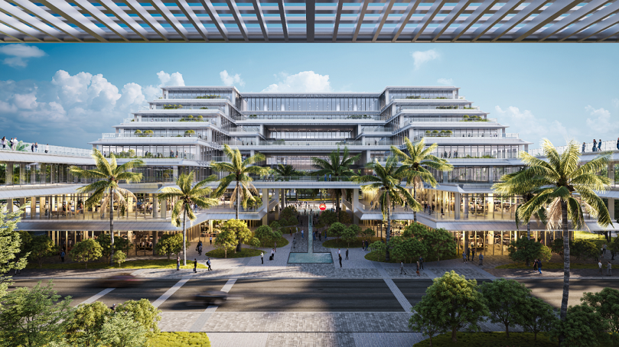 作为海南自贸港建设的标志性工程之一,中石油海南总部项目自启动以来备受关注。项目位于海南省海口市江东新区起步区,占地34.7亩,总建筑面积约7.45万平方米,总投资13.6亿元。设计上采用两个U型体量整合,地上8层、地下2层,通过首层架空和中央轴线贯通,形成开放通透的园区视觉通廊。