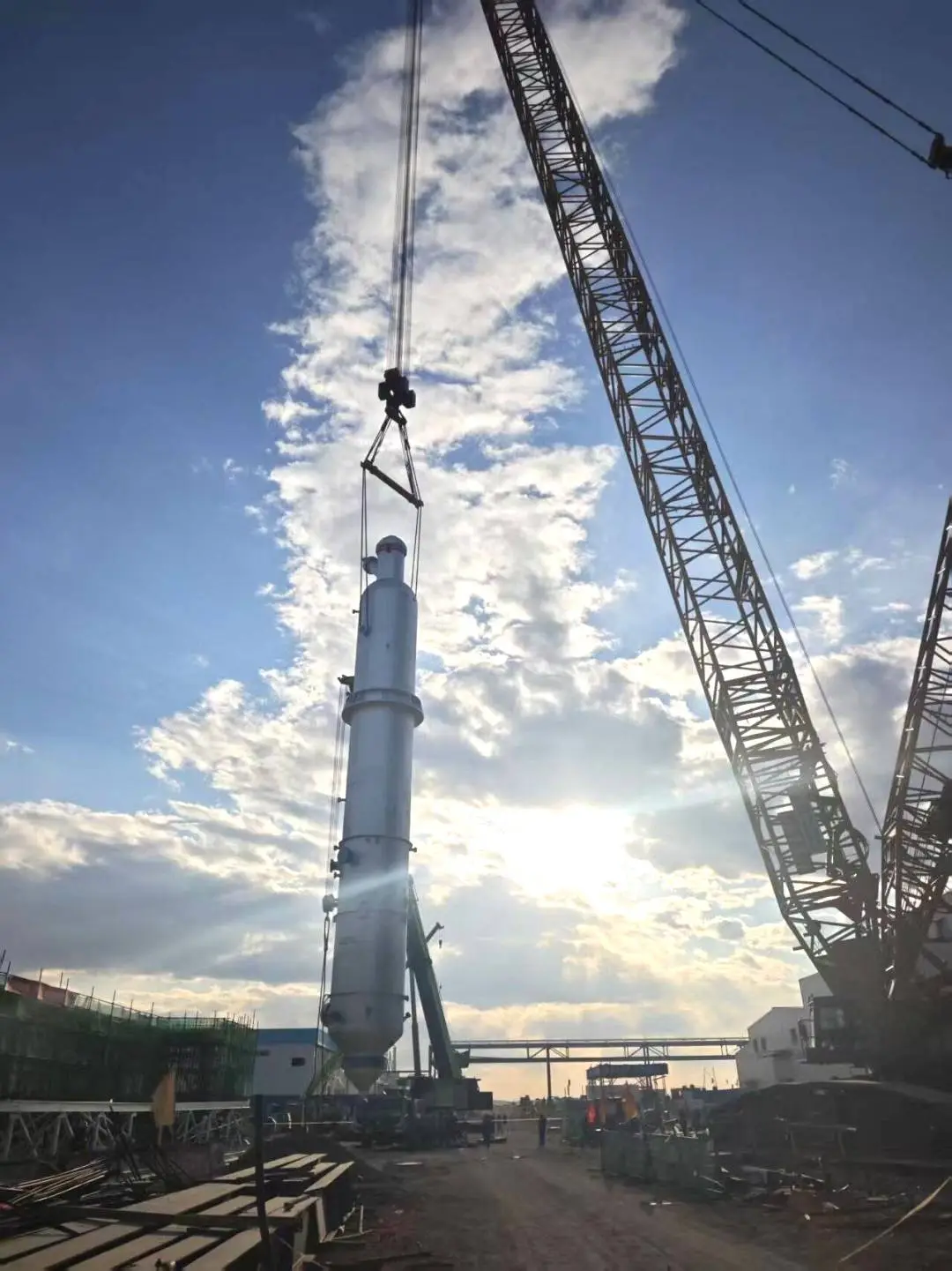 此次吊装的转化炉作为项目汽化装置的重要设备之一,单体重150余吨 ,安装标高27米,规格尺寸为Φ3680×25669。