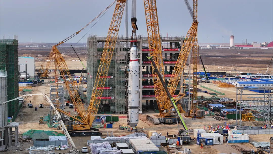 5月6日上午,由陕西化建工程有限责任公司承建的内蒙古金风绿能化工(兴安盟)有限公司绿氢制50万吨绿色甲醇项目(一期25万吨)气化装置首台转化炉在框架内精准安装就位。