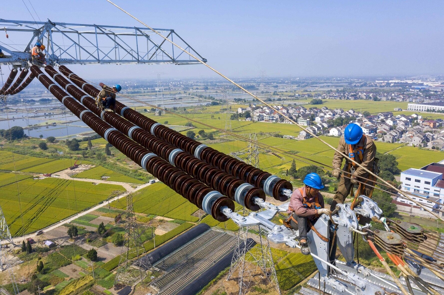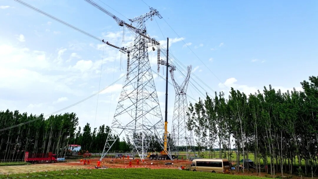 此次迁改的线路,也是全线完成的首条超高压输电线路。施工需拆除两基旧铁塔、新建三基铁塔,架设导线总长度为9条公里。为确保施工顺利进行,项目部提前做好现场调研,多方进行协调沟通,紧抓难得的停电施工周期,科学制定施工方案,调遣充足生产资源,合理组织现场施工,加强现场安全管控,全力推进迁改工程建设。一是优化施工方案,充分考虑停电影响;二是做好技术交底,提高施工效率;三是细化施工组织,确保工序衔接。采用预组装吊装铁塔的方式,有效缩短施工时间;四是严格落实制度,加强安全管控。施工现场执行网格化管理,明确各级网格员管理职责,对施工全过程进行安全盯控。通过多项举措,项目首条500kV超高压电力线路施工按照既定计划有序推进,各施工小组紧密协作,严格遵循施工流程和安全操作规范,提前两天完成了迁改任务,为后续超高压线路迁改赢得了“头彩”。