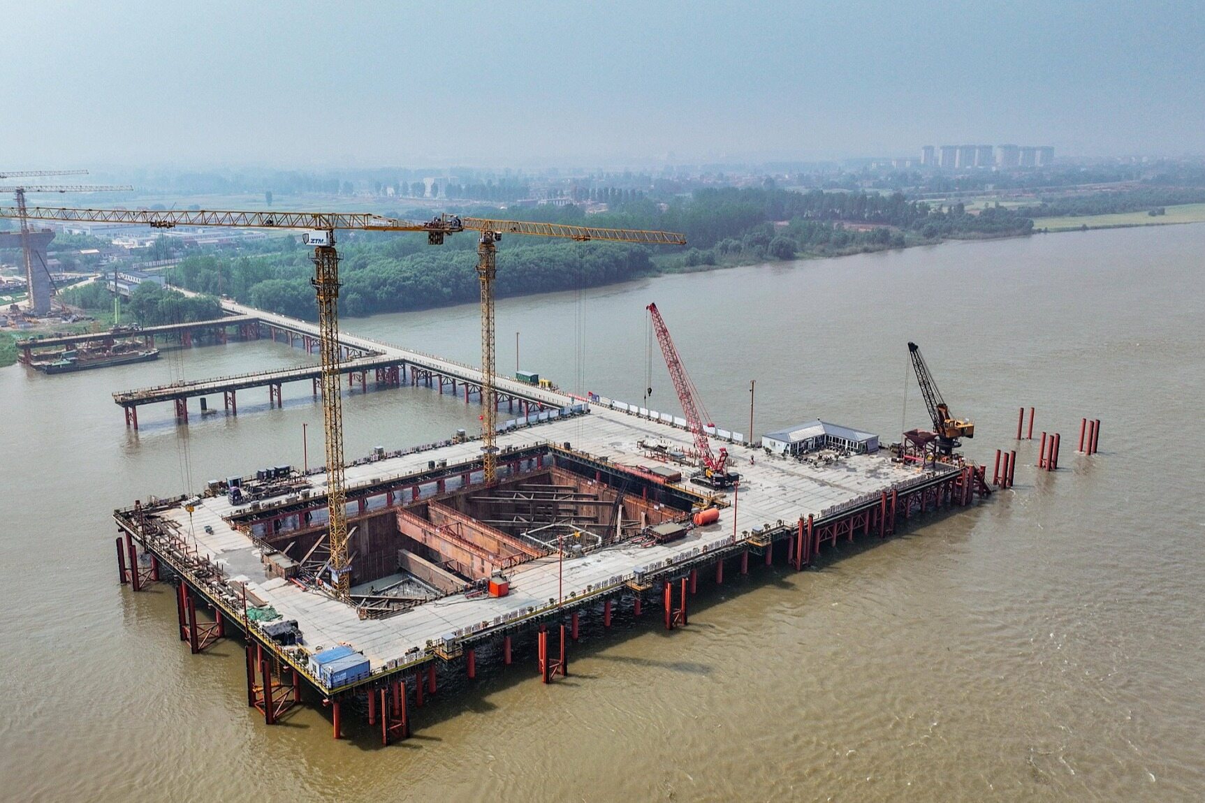 5 月 14 日,长江安徽段江面之上,一场力量与精度的 “钢铁之舞” 震撼上演。由中铁科工机械院与中交二航局联合研制的 1800 吨桥面吊机,在池州长江公铁大桥一标段成功完成动载试验及首节段钢梁架设。随着这台庞然大物精准托举千吨钢梁平稳就位,这座安徽省内第 6 座跨江公铁大桥正式迈入主桥上部结构钢梁施工的关键阶段。