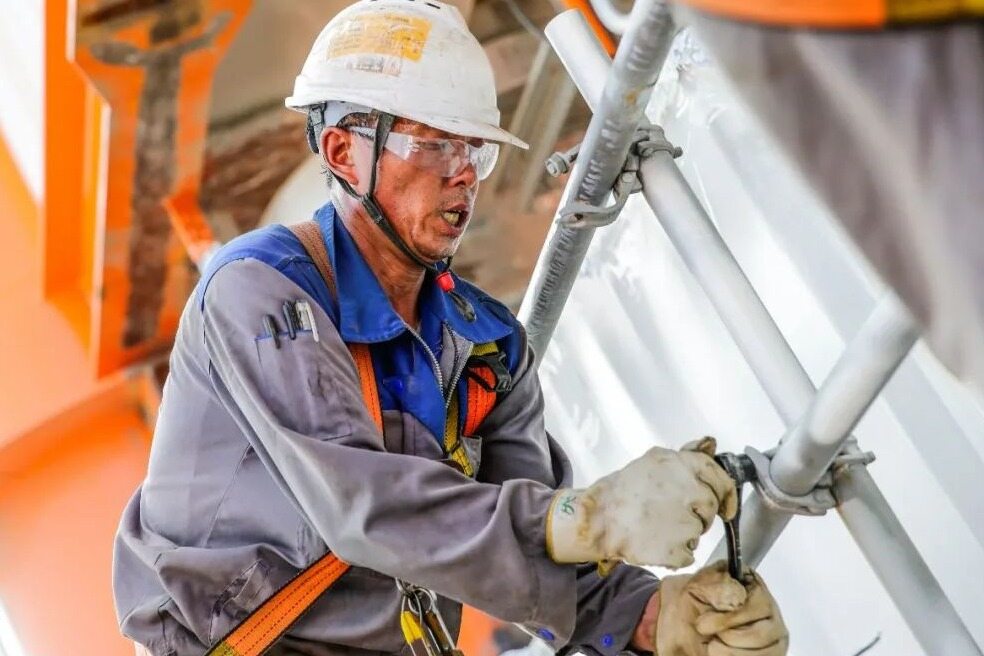 海油工程垦利10-2项目经理 沈亮:项目团队应用数字孪生技术进行三维建模与计算分析,通过仿真预演反复优化施工方案,并在主作业船“海洋石油228”上装备3套具有人工智能算法的北斗定位系统,同时配合多拖轮统筹联动,实现一次精准安装就位。