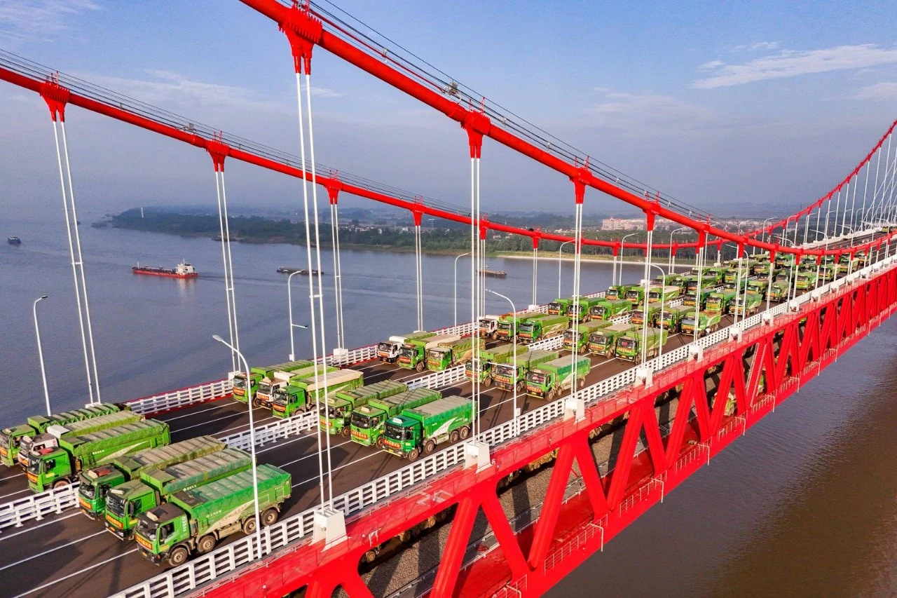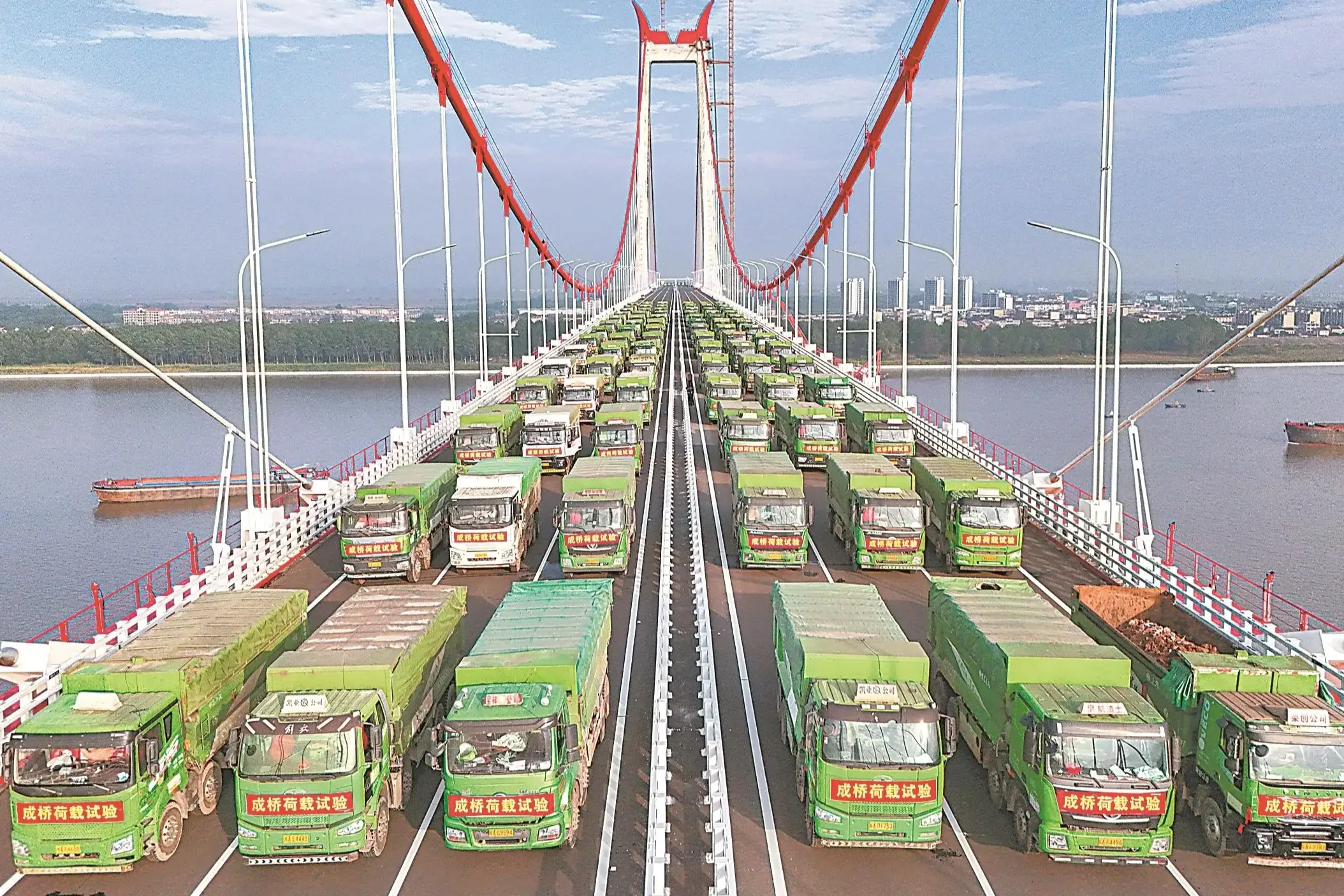 6月7日从中铁大桥局获悉,6月6日,由中铁大桥院设计、中铁大桥局施工的G3铜陵长江公铁大桥顺利完成“终极体检”——桥梁动静载试验。214辆总重约9000吨的重载货车分批上桥,模拟未来通行荷载,对大桥进行全方位测试。