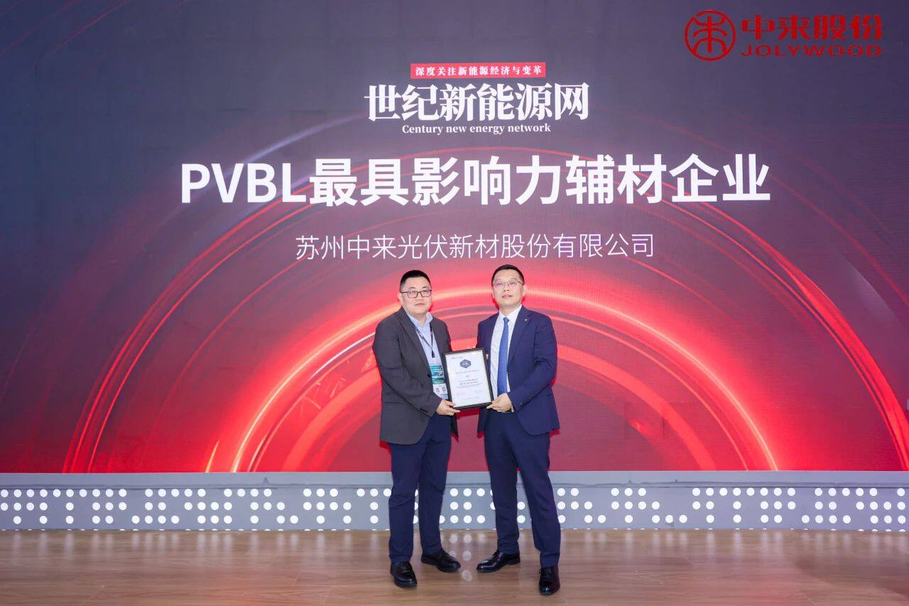 中来股份凭借其独步全球的光伏背板技术和连续四年光伏背板全球出货量第一的卓越表现,荣获了PVBL颁发的“年度最具影响力辅材企业”奖项。这一荣誉不仅是对中来股份在光伏辅材领域深耕多年的高度认可,更是对其在技术创新、产品质量和市场影响力等方面的全面肯定。