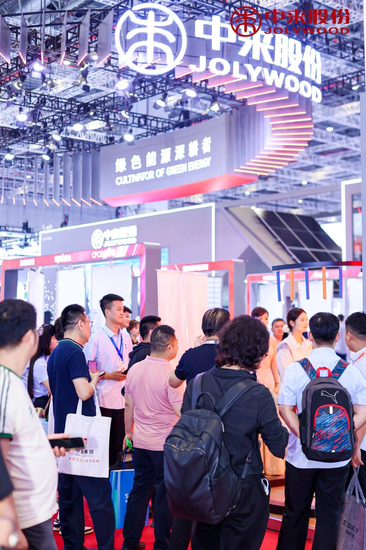 专为家庭设计的“中来NIWA阳台光伏系列”及面向民宿行业的“中来民宿光伏光热24h绿电系统”,以低碳、智能、高效为核心卖点,成为展会现场最受瞩目的焦点之一,国内外客户络绎不绝。中来NIWA阳台光伏系列是为家庭打造的低碳、智能、高效的即插即用小型光伏系统,系统便捷集成,10分钟安装,220V即插即用;全天候低成本用电,全年可节省35%的电费;搭配轻量化全黑铝合金支架,多场景自由安装;更美观、更高发电量,搭配中来N型高效全黑透明组件,降低用户用电成本。“中来民宿光伏光热24h绿电系统”,集成了多项前沿技术,旨在打造低碳、环保、高效的民宿能源解决方案——光伏发电系统利用太阳能资源,将光能转化为电能;储能系统则起到了平衡供需、优化能源配置的关键作用;充电桩系统的引入,为电动汽车等新能源交通工具提供了便捷的充电服务,进一步推动了绿色出行的普及,为游客提供更加绿色、舒适的住宿体验。