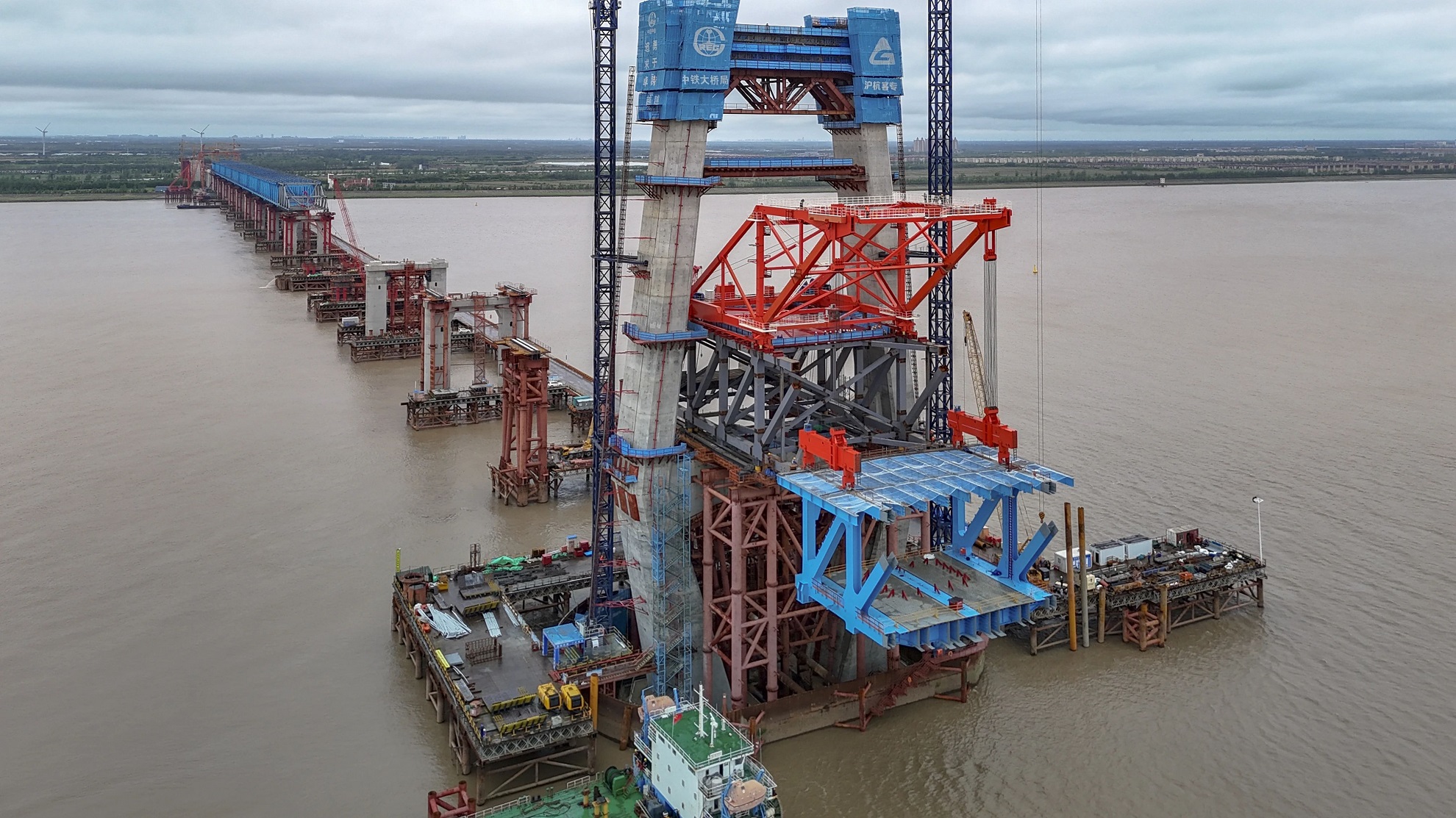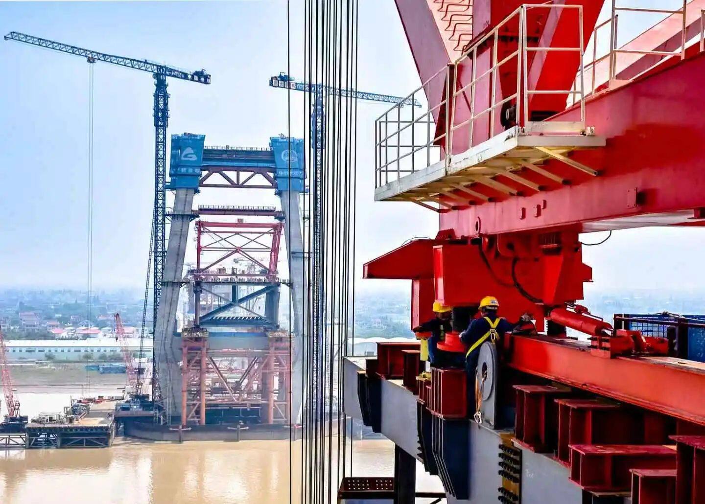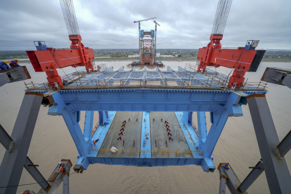 6月10日,沪渝蓉高铁崇启公铁长江大桥迎来重要施工进展,主通航孔首吊钢梁成功架设,标志着大桥主通航孔桥正式迈入上部结构施工阶段。