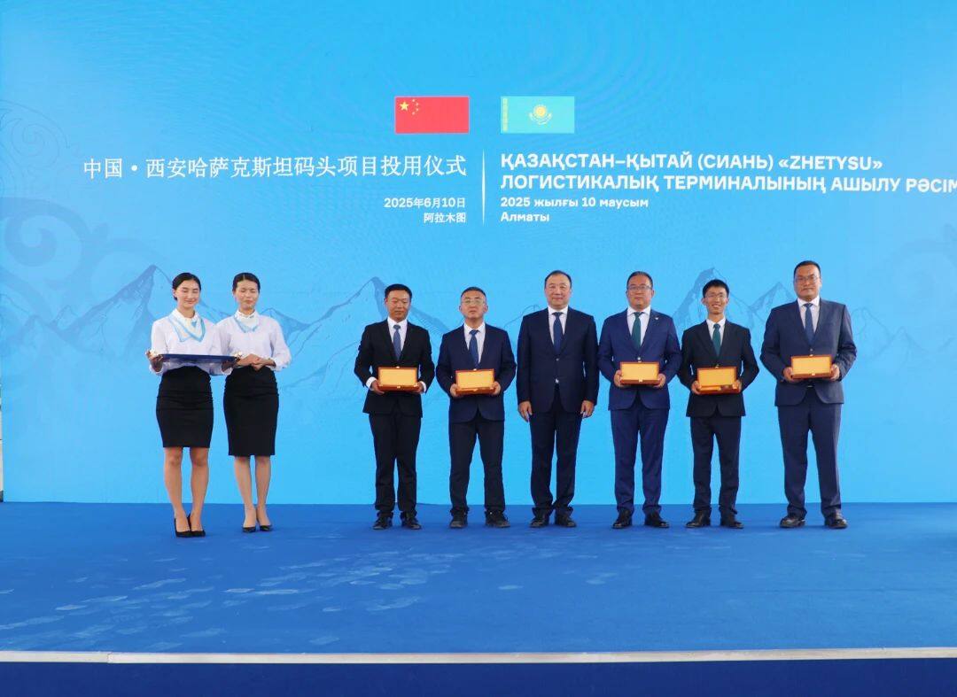 6月10日,中建丝路、中建六局承建的中国·西安哈萨克斯坦码头项目(阿拉木图哈中物流场站)投用仪式在陕西西安、哈萨克斯坦阿拉木图市以视频连线形式同步举行。陕西省省长赵刚、哈萨克斯坦萨姆鲁克·卡森纳国家基金主席扎库波夫、阿拉木图市市长萨蒂巴尔迪出席并致辞。哈萨克斯坦国家铁路公司董事长萨乌兰巴耶夫出席。陕西省委常委、西安市委书记方红卫致辞,西安市委副书记、市长叶牛平出席。