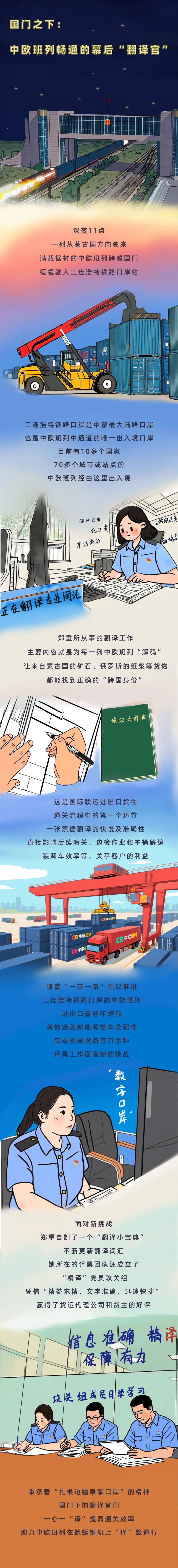 工作之余,郑重会望向不足5公里外的国境线,一列列中欧班列正搭载着经她翻译的货物驶向远方、奔赴欧洲,源源不断地将中国制造与世界共享。(此文出自见道官网www.seetao.com未经允许不得转载否则必究,转载请注明见道网+原文链接)见道网战略栏目编辑/银佳慧