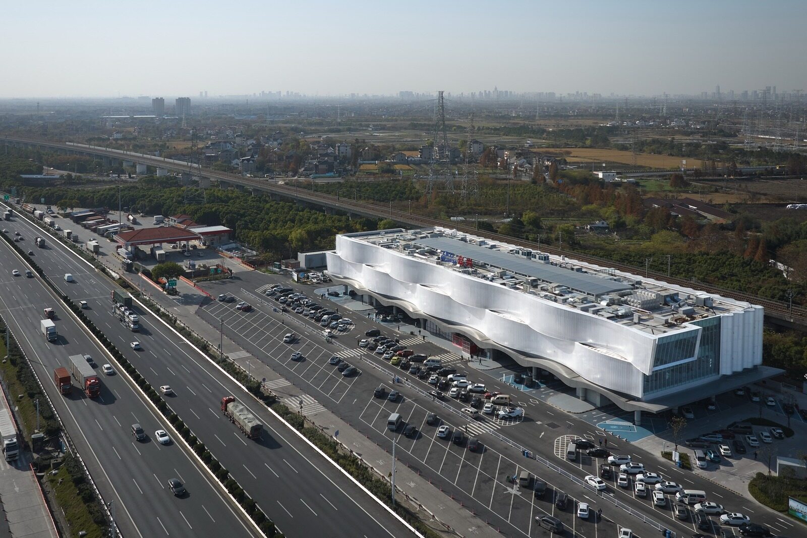 数据显示,项目总装机容量达1.348兆瓦,试运行期间日均发电量约7000度,预计年发电量超200万度,相当于每年减少二氧化碳排放约1040吨。同时,服务区充电能力显著提升,可同时为56辆电动汽车提供高效充电服务,充电效率位居全国高速公路服务区前列。