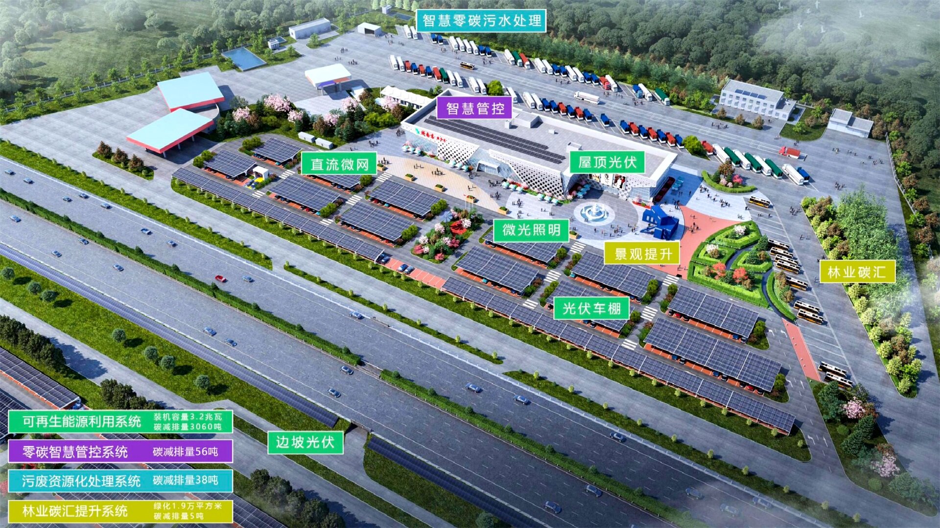 甘肃省高速公路服务区绿色低碳发展迈出重要一步——G22青兰高速公路接驾嘴服务区近零碳改造项目成功并网发电,标志着甘肃省首个近零碳高速公路服务区正式投入运营。