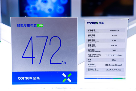 当前,产品经济性是大型储能项目的核心考量。楚能2025年上半年的战略重心,正是围绕其第四代产品——472Ah大容量电芯展开。该电芯单体容量高达1510.4Wh,循环寿命超12000次,能显著降低储能系统度电成本达20%。