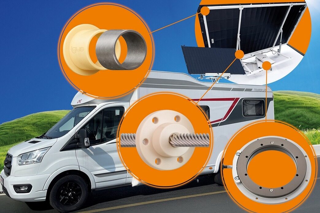 为了能够独立为房车供电,CityFreighter公司开发了一种太阳能跟踪器,它能自动对准太阳,从而确保最大化的能量输出。其机械传动部件由免润滑的igus运动塑料制成。即使在恶劣的天气条件下,它们也能确保太阳能电池板精确且免维护地移动。