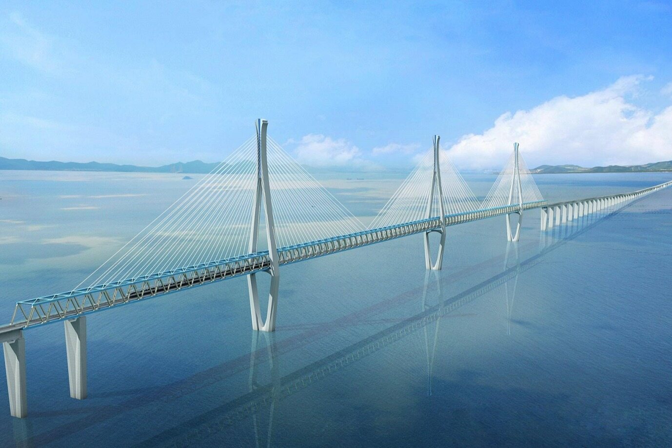 杭州湾跨海铁路桥是新建南通至宁波高铁的控制性工程,包括北、中、南三座航道桥和跨大堤、海中、浅滩区引桥,全长 29.2公里,采用时速350公里的双线无砟轨道设计,是目前世界上在建长度最长、建设标准最高的高速铁路跨海大桥。