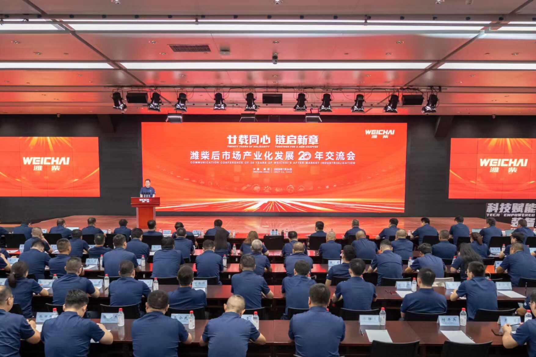 2025年7月26日,以“廿载同心 链启新章”为主题的潍柴后市场产业化发展20年交流会在潍坊举行。来自全国各地的主机厂代表与渠道合作伙伴、行业专家齐聚一堂,总结过去、交流经验、共话未来。