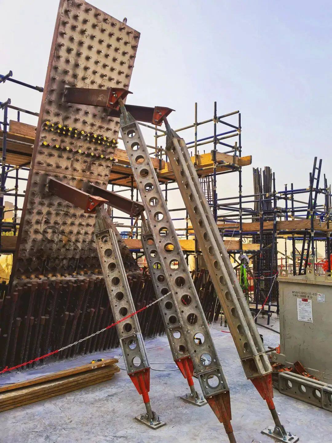 现场12块120mm厚、1.8m宽巨型斜墙板对接焊已全部完成