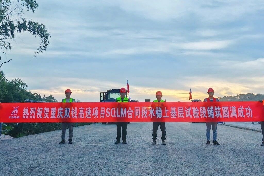 近日,北新路桥集团四川分公司重庆双钱路面项目水稳上基层试验段顺利完成铺筑,项目施工建设取得关键进展。