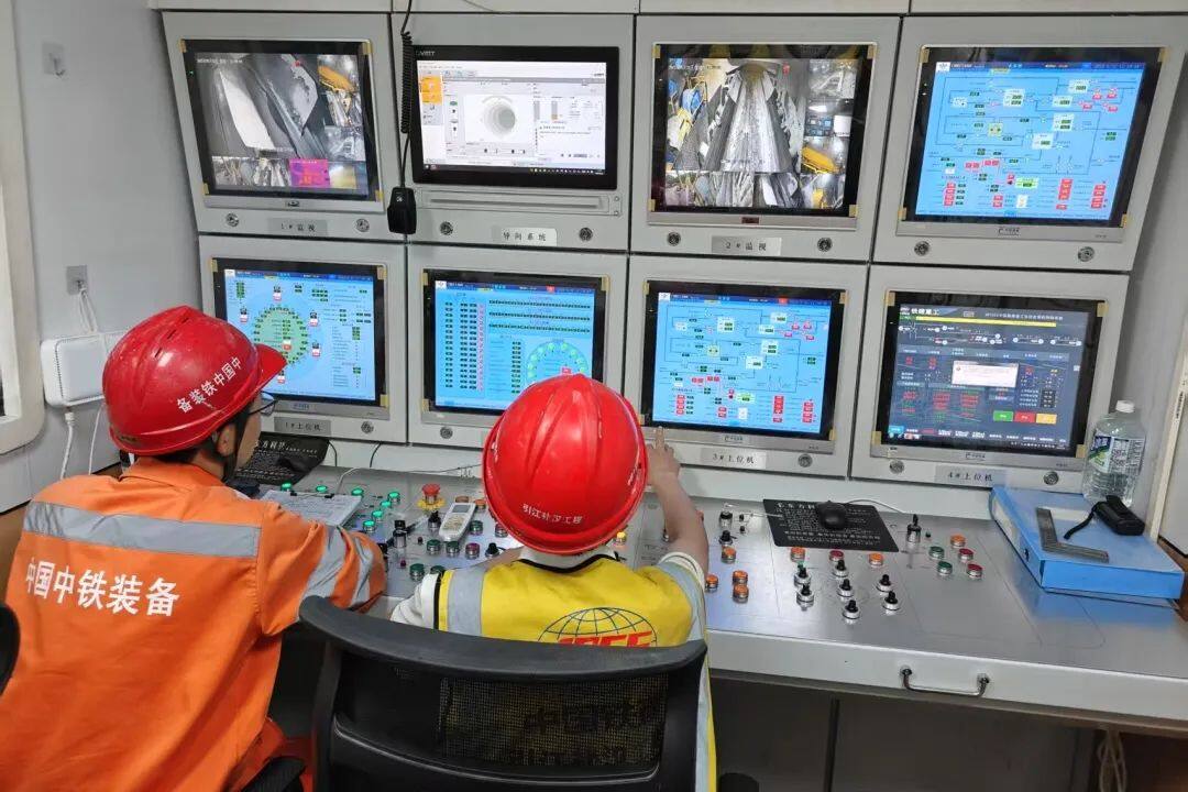 其中,“江汉平安号”作为当前国内引水隧道项目中直径最大、功能最完备的双护盾硬岩掘进机,开挖直径达11.93米,肩负着引江补汉工程土建施工及金结机电安装2标段长达16.6千米的输水隧洞掘进任务。该设备配备了一系列先进智能系统,可确保隧洞超大断面开挖实现“安全、高效、可靠”的施工目标。7月,其管片拼装量突破 243环,单月进尺达439米,创下国内同类工程月掘进速度新纪录,截至目前掘进总里程已达1887米。