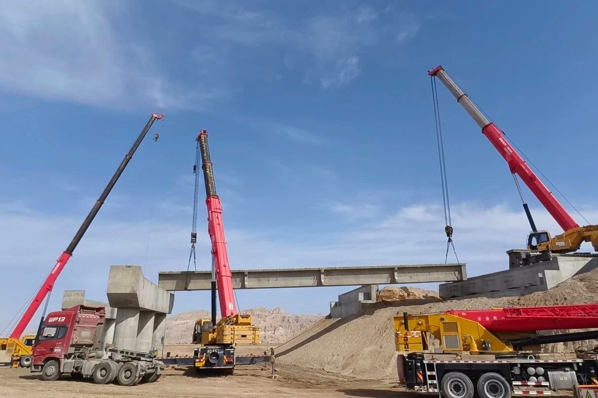 近日,随着首榀长30米,重91吨的预制箱梁平稳落定于梁桥垫石支座上,北新路桥集团兵团交建公司G217线三标项目正式进入架梁施工阶段,开启了桥梁工程由下部施工转向上部施工的新启程。