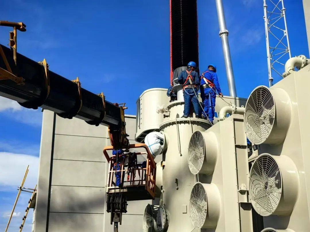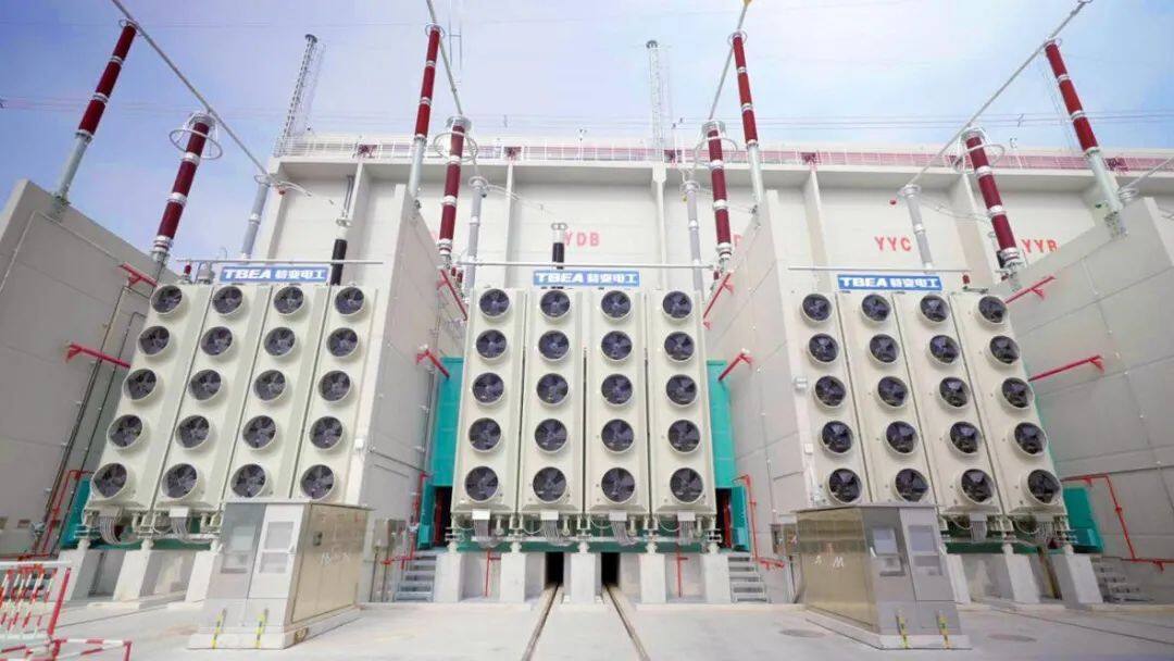 特变电工还为工程提供了诸多关键配套产品。其中,为送端中宁换流站提供的2台750千伏站用变压器、2台配变及为衡阳换流站提供的2台500千伏站用变压器、2台500千伏调相机变压器,为变电站自身运行提供稳定、可靠的电源,进一步增强了换流站的无功调节能力,保障整个变电站的安全高效运转,作为“生命线电源设备”,为“宁电入湘”工程的两端筑起了“隐形基石”。750千伏站用变具备优异的抗短路、抗雷击、抗地震及绝缘性能,配备完善保护系统,承担着将750千伏电压降至66千伏、为换流站站用系统供电的关键任务。