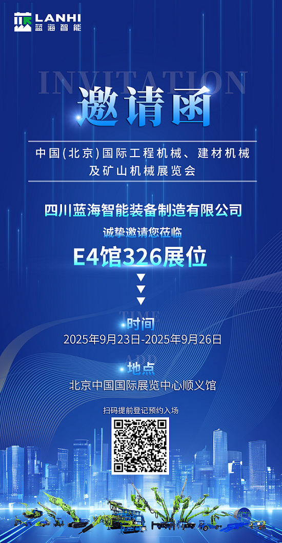 蓝海智能邀您共襄盛会! 2025年9月23—26日,这里将聚集全球最强机械装备制造商,聚心品质,共创未来。蓝海智能作为国内先进的地下工程成套装备集成商,将携LGM312U智能拱锚一体化台车CYTJ45(A)矿用液压掘进钻车亮相展会现场,敬邀各位届时拨冗出席! 蓝海展位已锁定——锁定E4馆326展位